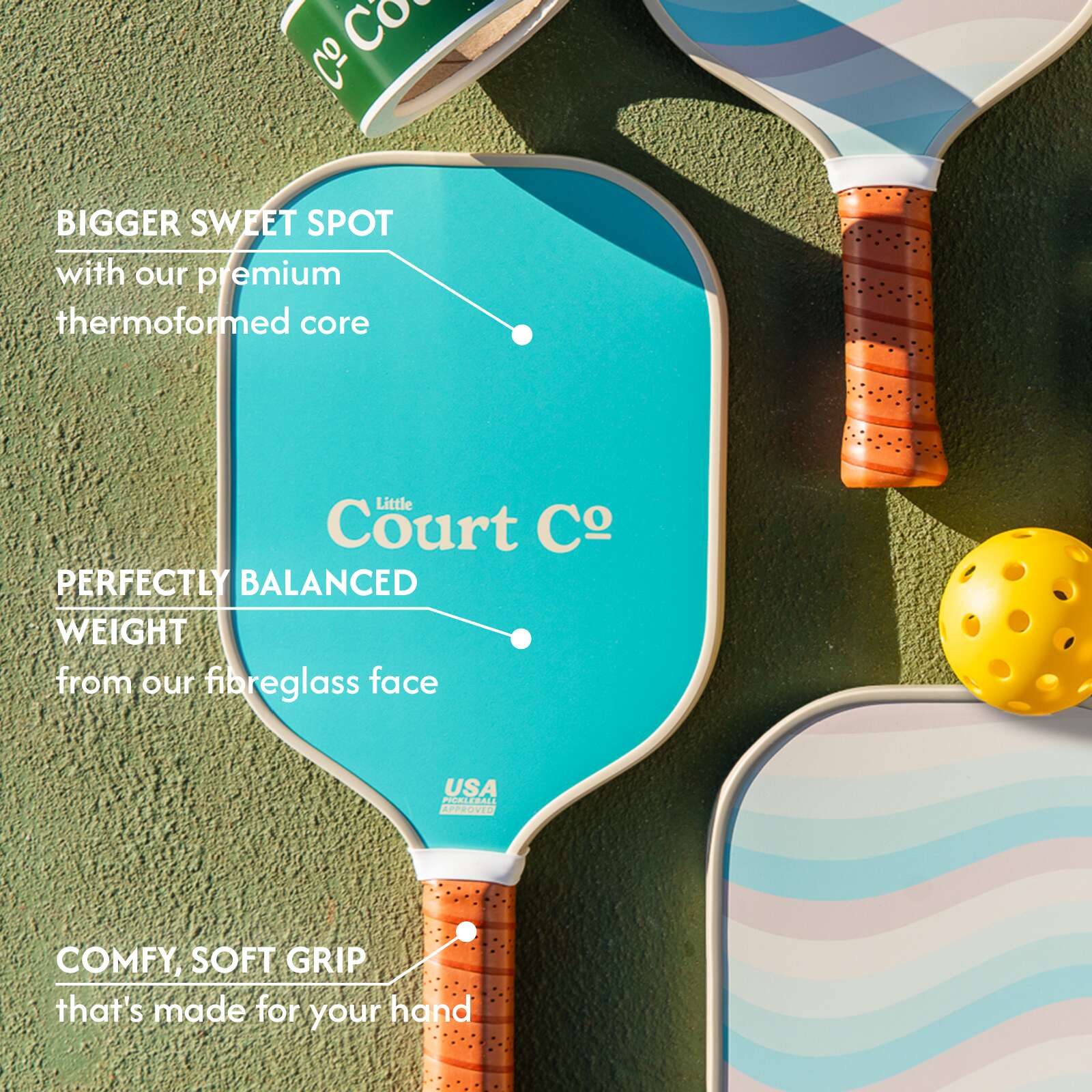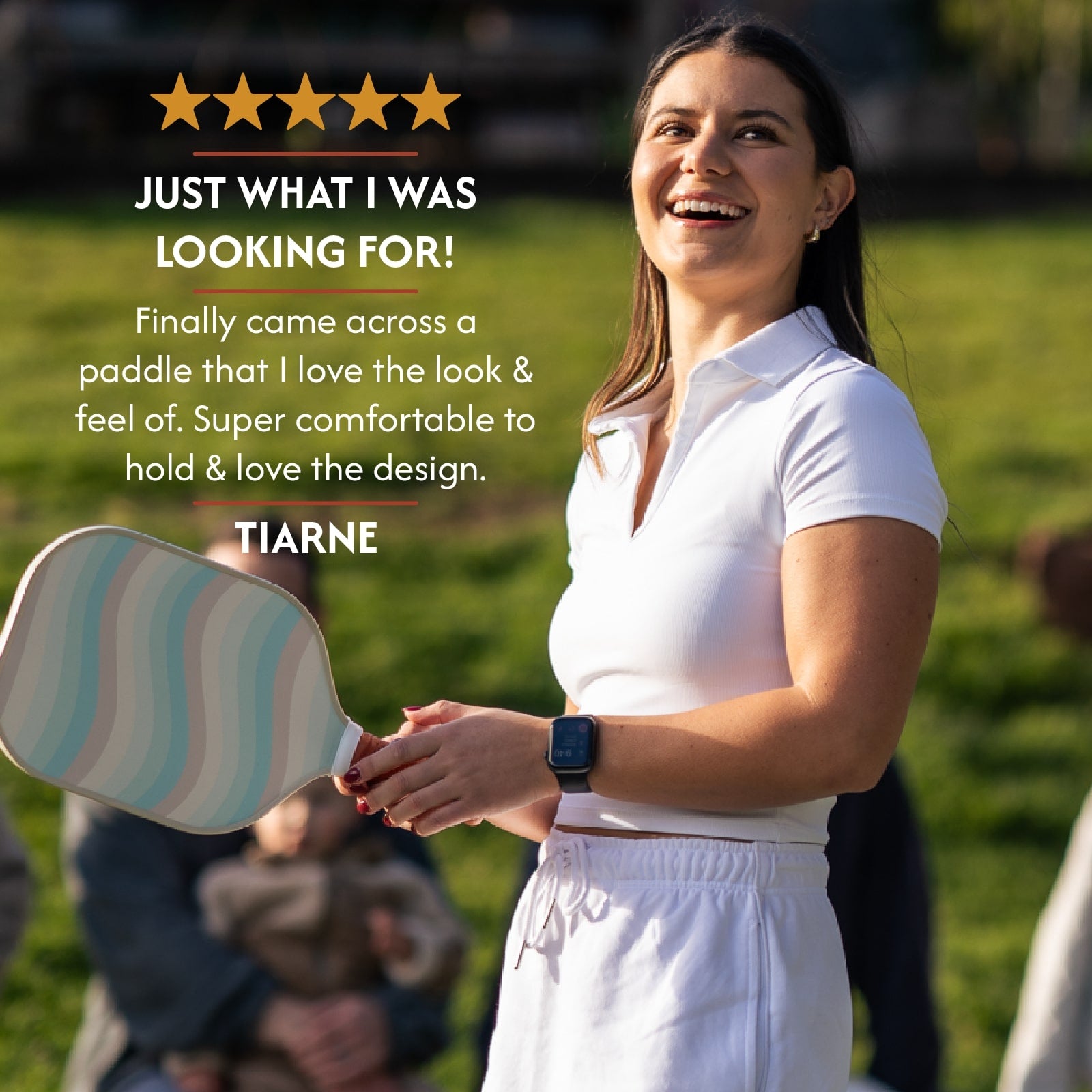 Inspired by sunlit shallows and the easy flow of movement. Ripple’s sun-warmed curves and calming tones bring an effortless energy to every match. With a premium fibreglass face and perfectly balanced body, Ripple moves with you — giving you silky control and easy rhythm from your first serve.